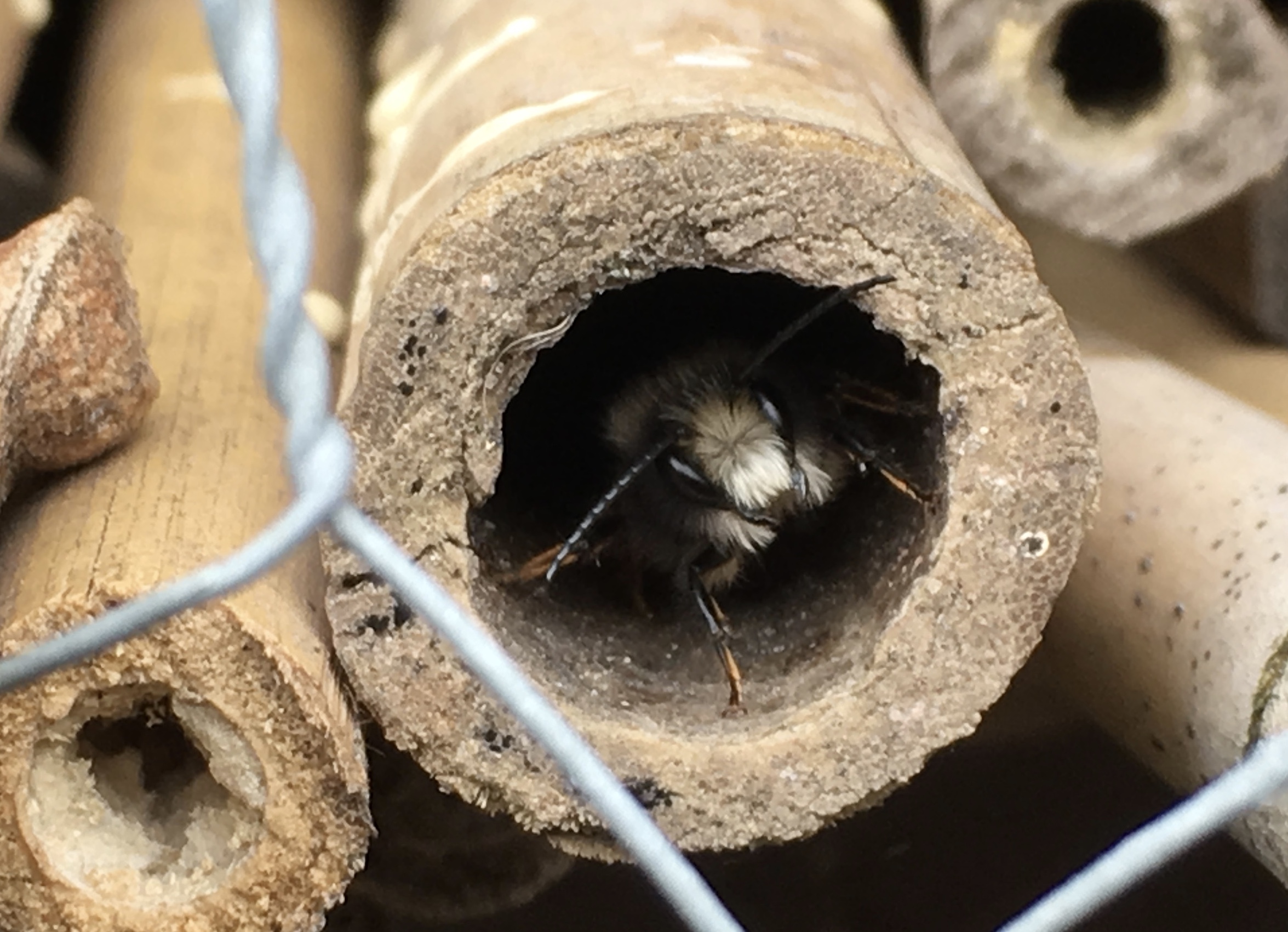 Schilf, Bambus oder andere hohle Pflanzenstängel werden gerne von spezialisierten Bienen und Wespen für ihre Brut benutzt. Man kann sie zusammenbinden und einfach schräg aufhängen, damit der Regen abtropft. Wichtig