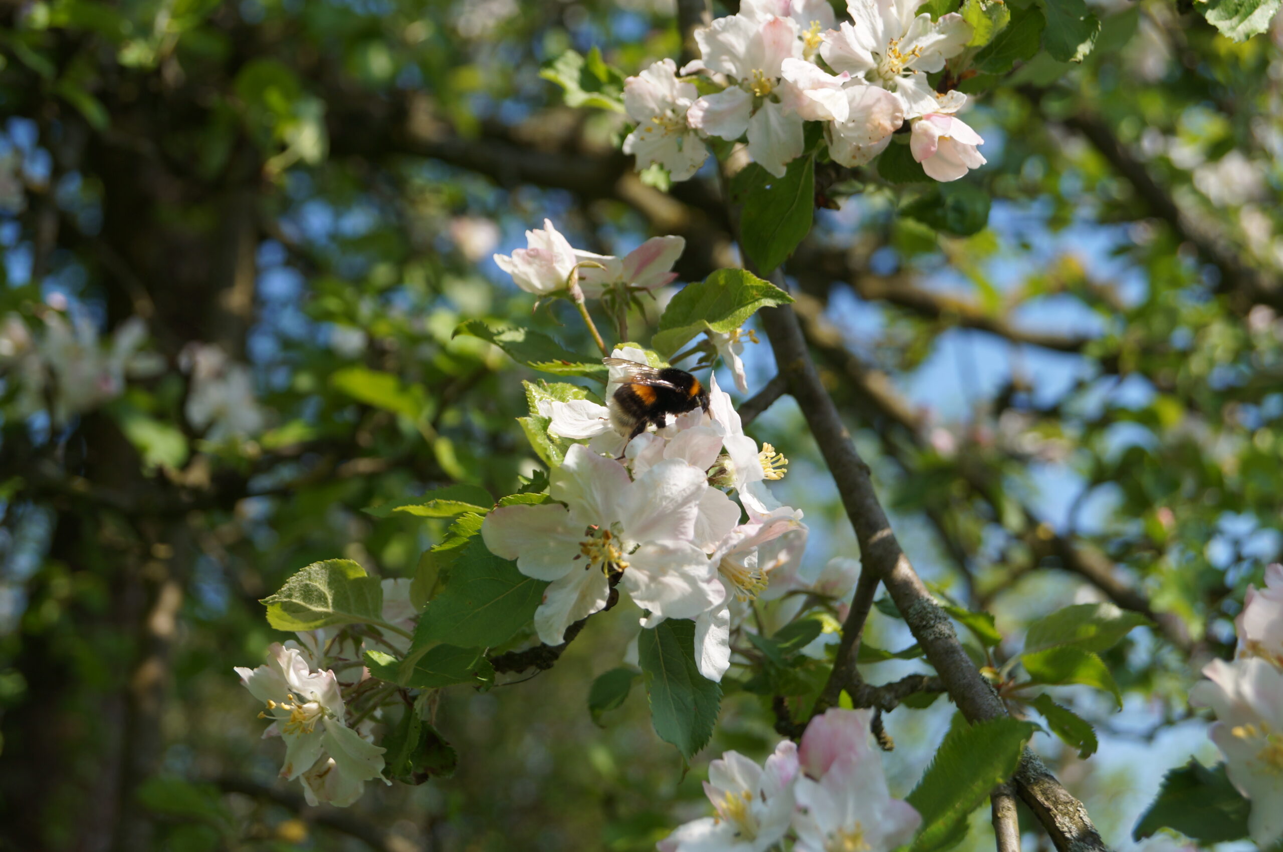 Bäume spielen eine herausragende Rolle beim Erhalt der Biodiversität. Beispielsweise Streuobstwiesen stellen in Mitteleuropa einen der artenreichsten Lebensräume dar, denn sie beherbergen bis zu 5.000 Pflanzen- und Tierarten. Die Kombination von Wiesen und Ackerflächen mit Bäumen unterschiedlicher Sorten erzeugt eine hohe Strukturvielfalt, die vielen verschiedenen Tier- und Pflanzenarten eine Heimat bietet. Die Fläche unter den Bäumen, die Baumstämme, die Baumkronen, das Totholz und der Boden unterhalb der Streuobstwiese haben jeweils ihre eigenen spezialisierten Bewohner. So entsteht echte Vielfalt. Zusammen mit unseren Flächenpartner*innen legen wir deutschlandweit vielfältige Baumpflanzungen auf Streuobstwiesen wie auch in und entlang von Äckern an. Hierbei wählen wir gezielt alte und dem Standort angepasste Obstsorten aus. Somit tragen wir dazu bei, auch die genetische Vielfalt unserer regionalen Kultursorten zu erhalten. Außerdem ist uns sehr wichtig, dass die gepflanzten Bäume ihre Lebensraumfunktion auch in den kommenden Jahrzehnten erfüllen können. Dies gelingt durch fachgerechte Pflege der Bäume. Hierzu bezuschussen wir unseren Flächenpartner*innen die Teilnahme an Schnittkursen und stellen ihnen Schulungsmaterial zur Verfügung.