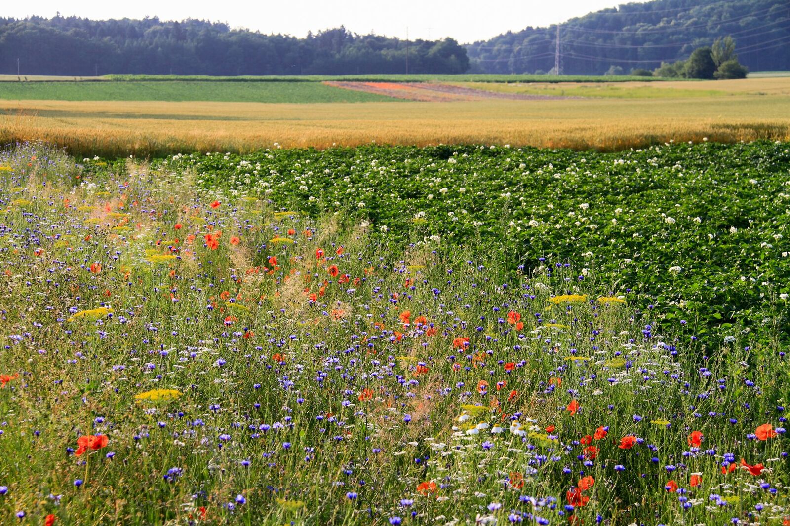 Eine blühende und reich strukturierte Landschaft stellt nicht nur ein gesundes Vorkommen an Nützlingen sicher, sondern bietet auch Lebensraum und Nahrung für viele weitere Insekten, die dann bestäuben (und dadurch ebenfalls Nützlinge sind), zersetzen, als Futter dienen und vieles mehr!