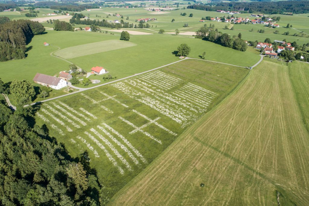 Wissen und Erfahrung zur Wiederherstellung von artenreichem Grünland sind kaum vorhanden. Das Netzwerk Blühende Landschaft und die elobau Stiftung aus Leutkirch im Allgäu nehmen sich dieses Defizits an und entwickeln und erproben auf einer 3,3 ha großen Versuchsparzelle bei Leutkirch im Allgäu praxisorientierte Handlungsempfehlungen für die Wiederherstellung von artenreichen Grünlandbeständen aus Intensiv-Grünland. Dabei haben wir vor Ort junge Demeter-Landwirte als Partner gewinnen können, die die Bewirtschaftung nach unseren Vorgaben umsetzen und den Aufwuchs der Wiesen im landwirtschaftlichen Betrieb nutzen.