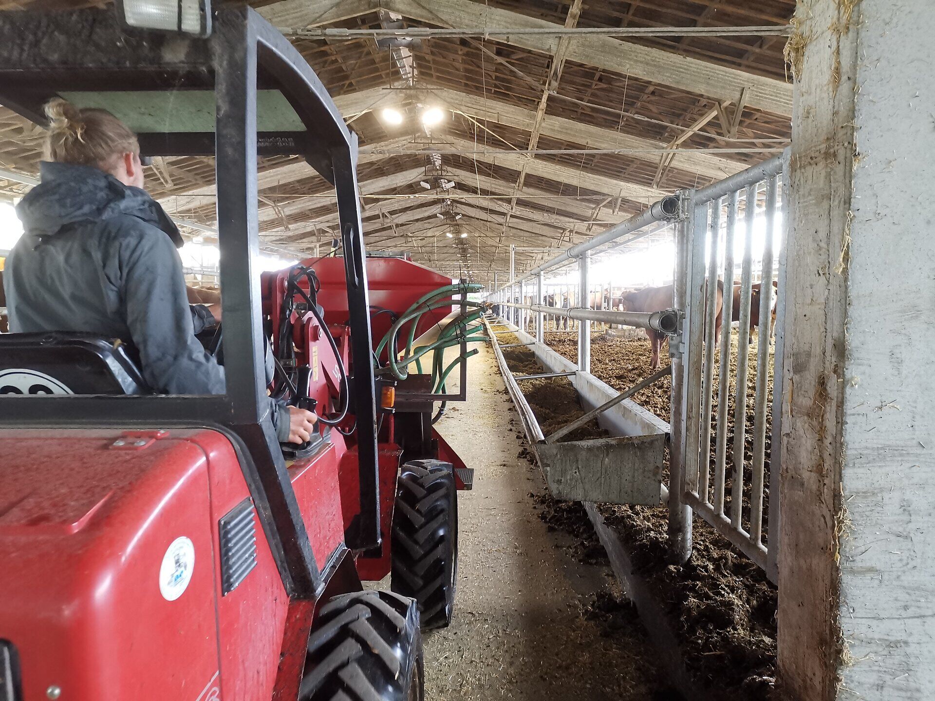 Eine händische Einstreu kam bei der Größe dieses Betriebes in 18311 Ribnitz-Damgarten/ Klockenhagen nicht mehr in Frage. Daher wurde die feuchte Pflanzenkohle über eine eigens umgebaute Sämaschine maschinell in die Stallboxen ausgeblasen, vom Vieh eingetreten und später über die Stroh-Mistausbringung auf die Felder gebracht.